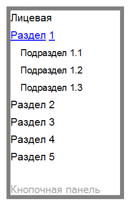 При установке кнопочной панели на второстепенные страницы (страницы Разделов, Подразделов), вы увидите кнопки главных разделов сайта и  кнопки подразделов, которые относятся к открытому разделу: