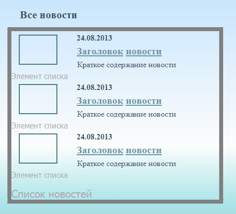 Для посетителя Новости выглядят как страница, на которой стоит список ваших новостей – с датой, заголовком, картинкой и кратким анонсом новости.