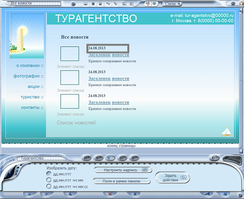 Во время редактирования панелей новостей в программе вы будете видеть его оформление точно так, как оно будет выглядеть при просмотре в браузере.