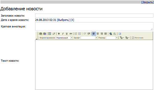 А добавлять, редактировать новости вы сможете прямо на своем сайте в браузере с любого компьютера, подключенного к сети, без использования Сайткрафта.